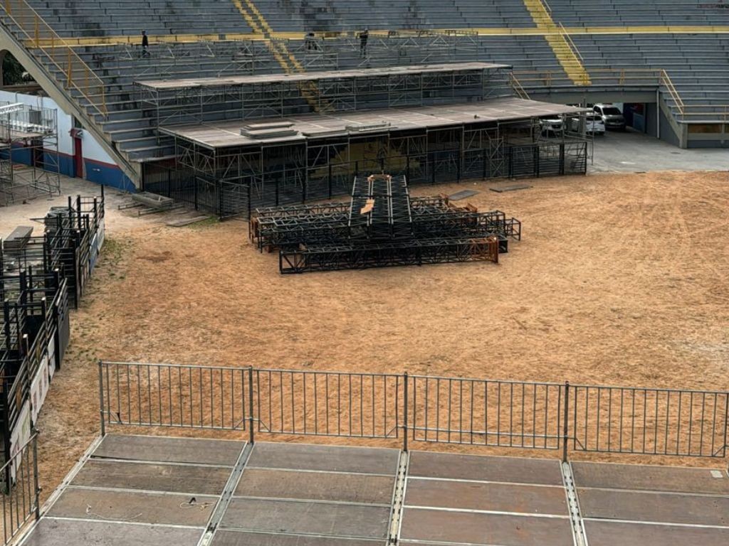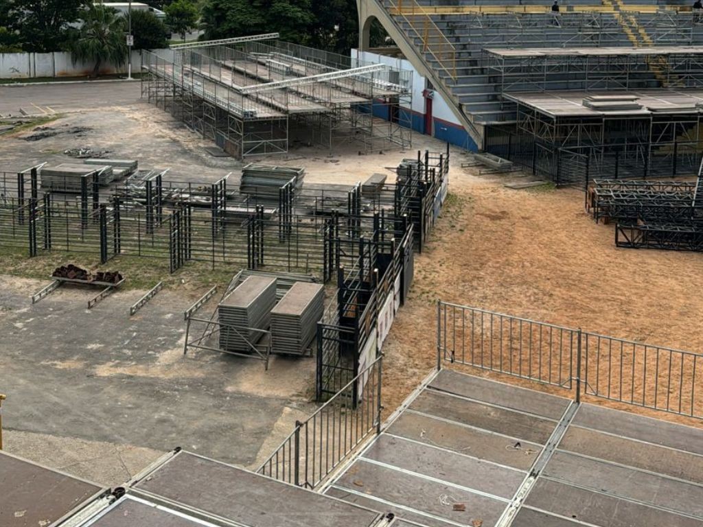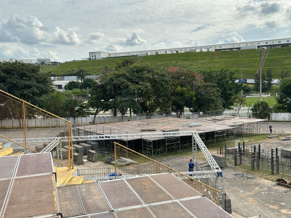 Foram montados camarotes e palco, estruturas essenciais para receber grandes atrações e proporcionar momentos inesquecíveis.