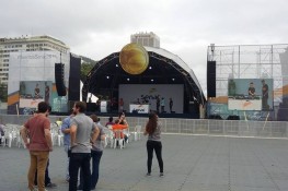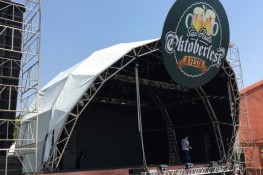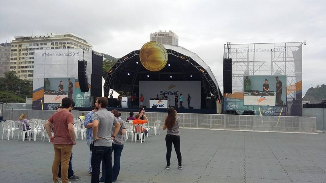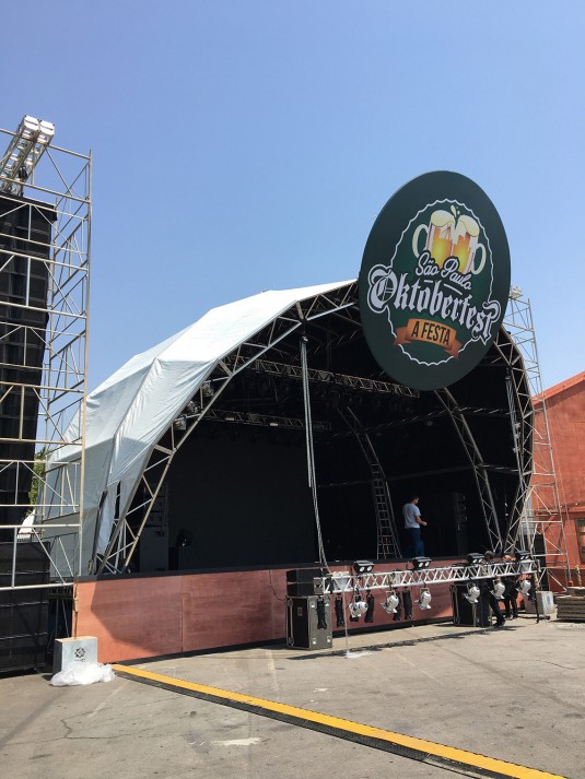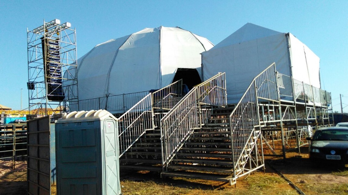 Para o sistema de som e painéis de LED estão inclusas duas torres medindo 2,33m x 2,33m com altura de aproximadamente 9,00m em andaimes tubulares com sistema de travamento com grades fabricadas em aço galvanizado.